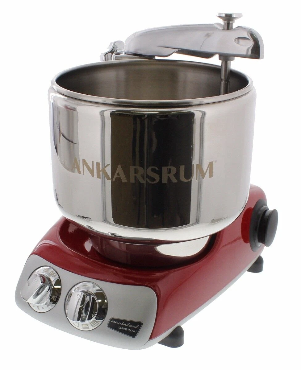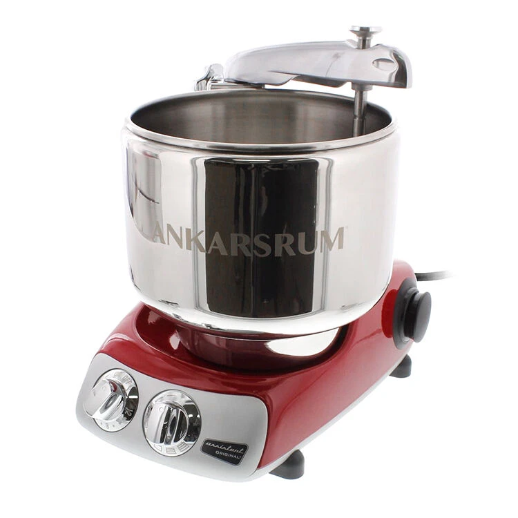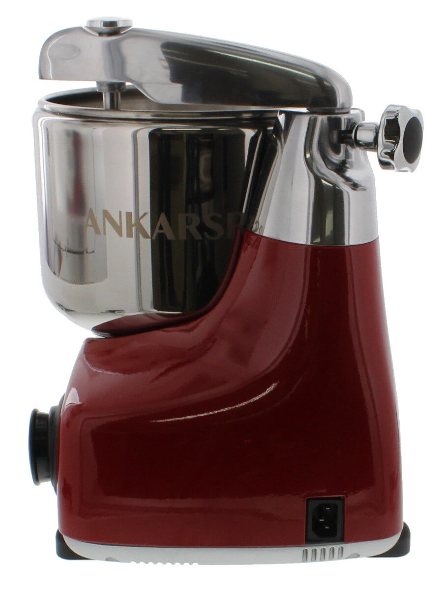 De glanzend metaal-rode Ankarsrum Assistent Original kneedmachine is vervaardigd uit gegoten aluminium en heeft een roestvrijstalen mengkom met een inhoud van 7 liter. De vernieuwde versie 6230 is uitgerust met een extra krachtige 1500 Watt sterke motor. De machine heeft een capaciteit voor het kneden van 5 kg deeg of 1,5 liter vloeistof. Tevens is de machine met accessoires om te bouwen tot een veelzijdige keukenmachine. De keukenmachine is: 40 x 27 x 36 cm (l x b x h).