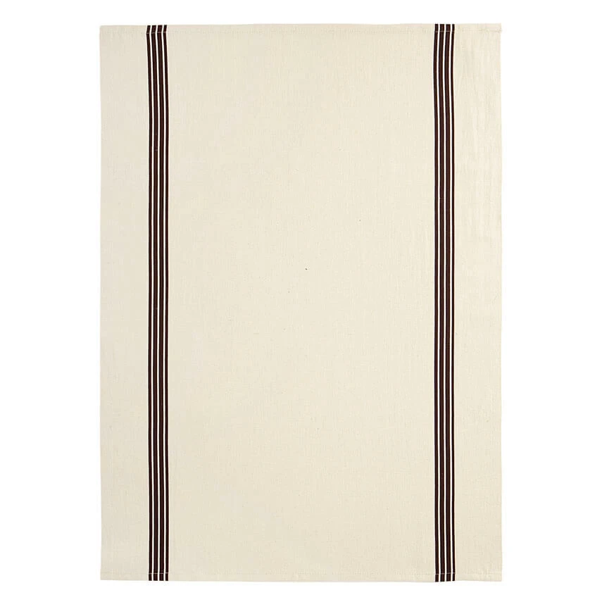 De Charvet PIANO theedoek is vervaardigd uit 59% katoen en 41% linnen. De theedoek is geweven in een gebroken witte kleur met aan beide zijde drie smalle, donkere strepen. De doek is 75 cm lang en 52 cm breed. Gebruik voor het drogen van uw afwas.