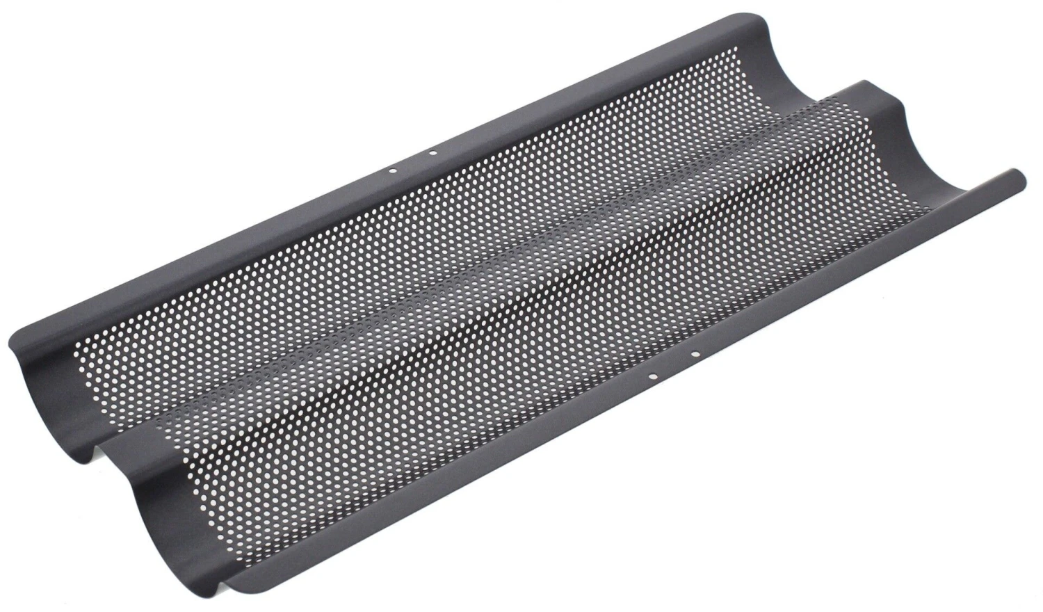 De stokbroodbakplaat van De Buyer is gemaakt van staal en is voorzien van een antikleeflaag. Door deze laag blijft het staal beschermd en kleeft het brood niet aan de vorm vast. Met de De Buyer baguettevorm bakt u twee stokbroden tegelijk.