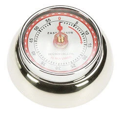 De Zassenhaus Timer Speed kookwekker is vervaardigd uit metaal en is voorzien van een magneet. De kookwekker heeft een maximaal instelbare tijd van 55 minuten. Draai de ring voor gebruik door tot 55 minuten en dan terug naar de tijdsduur die u wenst. Na afloop van de ingestelde tijd klinkt een authentieke ringel.